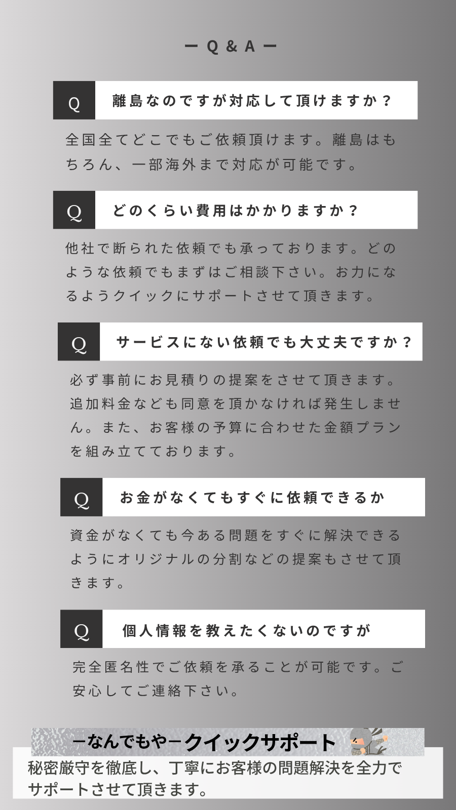 何でも屋クイックサポートでは万が一当社から情報が漏れた場合は、料金の全額をお返しいたします。
